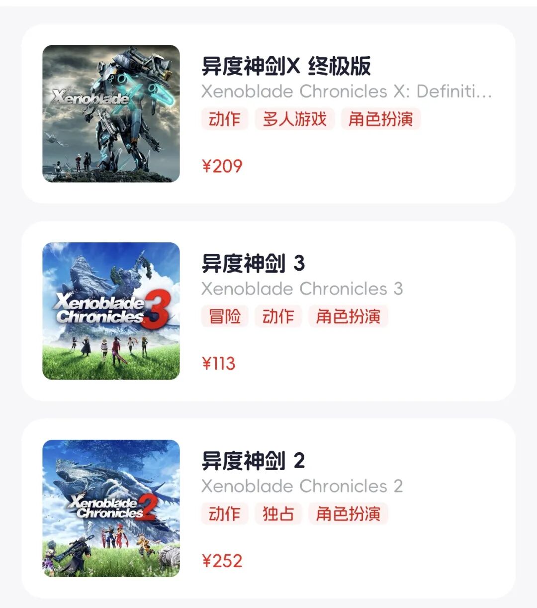 同样道理的还有《异度之刃3》:二手价113元入手,玩两个月腻了按113元回收。一张全新卡带的钱,在蘑菇时间可以循环体验几十款游戏。